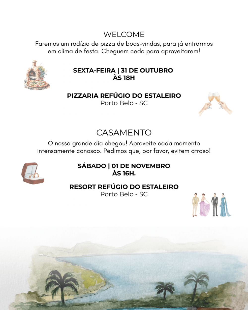 Por isso, ficaríamos muito felizes se vocês decidissem passar esse tempo com a gente por lá — assim conseguimos aproveitar ainda mais a companhia de cada um, viver bons momentos juntos e prolongar a festa um pouquinho mais!