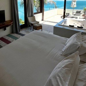O lugar que escolhemos para celebrar nosso casamento tem muito significado para nós. Desde a conexão com a natureza, a vista — que lembra muito um dos nossos lugares favoritos na Grécia — e, principalmente, a possibilidade de hospedagem dos convidados. (E nem se fala no café da manhã).